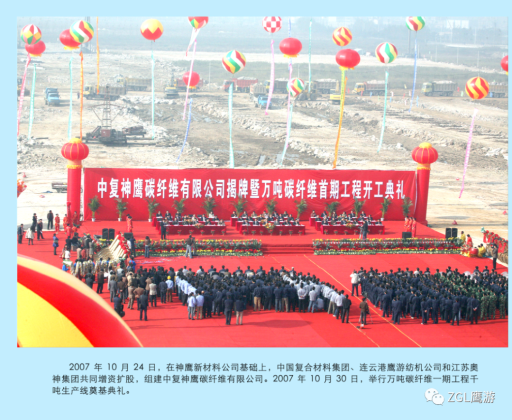 2008年12月3日上午9點(diǎn)38分,中復(fù)神鷹萬(wàn)噸碳纖維一期工程在連云港經(jīng)濟(jì)技術(shù)開發(fā)區(qū)大浦工業(yè)區(qū)投產(chǎn)。
