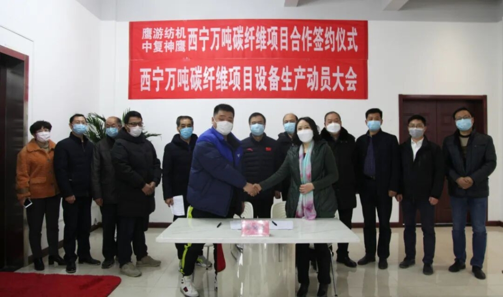2020年3月6日,舉行鷹游紡機(jī)和中復(fù)神鷹西寧萬(wàn)噸碳纖維項(xiàng)目合作簽約儀式暨西寧萬(wàn)噸碳纖維項(xiàng)目設(shè)備動(dòng)員大會(huì)。