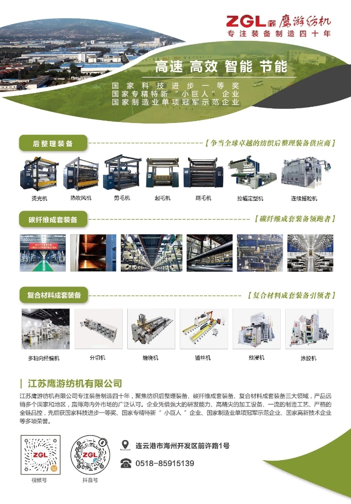 江蘇鷹游紡機有限公司專注裝備制造四十年,聚焦紡織后整理裝備、碳纖維成套裝備、復(fù)合材料成套裝備三大領(lǐng)域,產(chǎn)品遠銷多個國家和地區(qū),贏得海內(nèi)外市場的廣泛認可。企業(yè)憑借強大的研發(fā)能力、高精尖的加工設(shè)備、一流的制造工藝、嚴格的全鏈品控,先后獲國家科技進步一等獎、國家專精特新“小巨人”企業(yè)、國家制造業(yè)單項冠軍示范企業(yè)、國家高新技術(shù)企業(yè)等多項榮譽。